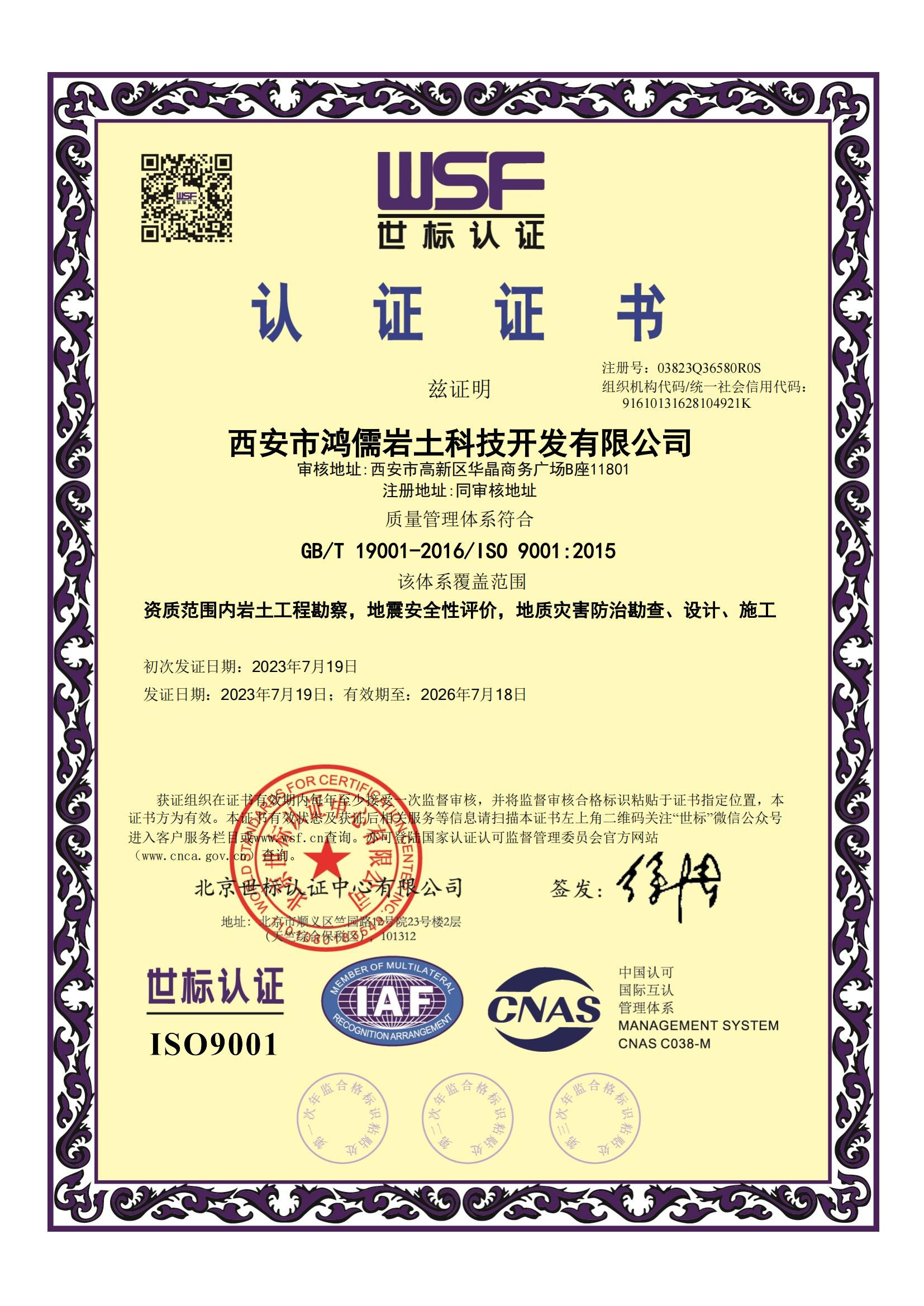 鴻儒勘測設計有限公司成立于1997年,注冊資金1212萬元。具有工程勘察專業類甲級資質、環保工程專業承包三級資質,地質災害治理工程勘查、設計及施工甲級資質,地質災害評估丙級資質,通過了GB/T 19001-2016/ISO 9001:2015質量管理體系認證。